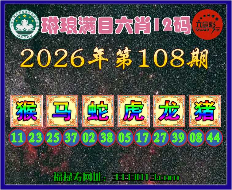 108期:【琳琅满目】 🀄六肖12码🀄【猴马蛇虎龙猪】开:狗45