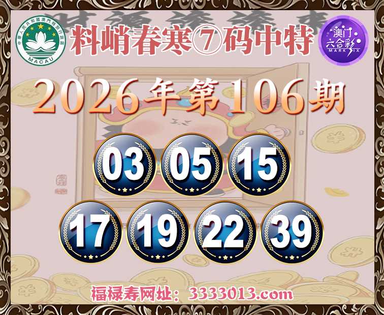 106期:【料峭春寒】 🥠⑦码中特🥠【03.05.15.17.19.22.39】开:22