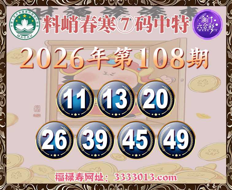 108期:【料峭春寒】 🥠⑦码中特🥠【11.13.20.26.39.45.49】开:45