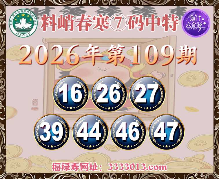 109期:【料峭春寒】 🥠⑦码中特🥠【16.26.27.39.44.46.47】开:16