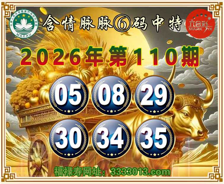 110期:『含情脉脉』 ☘️⑥码中特☘️【05.08.29.30.34.35】开:30