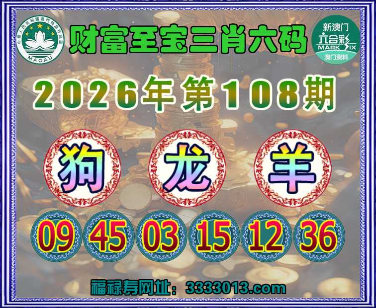 108期:〖财富至宝〗 ♦️三肖六码♦️【龙羊】开:狗45
