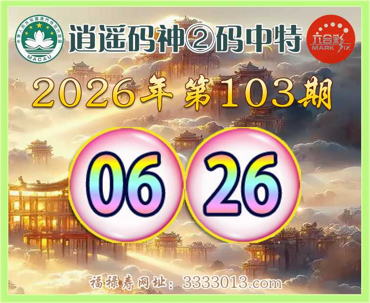 103期:〖逍遥码神〗 🤩②码中特🤩【06.26】开:06
