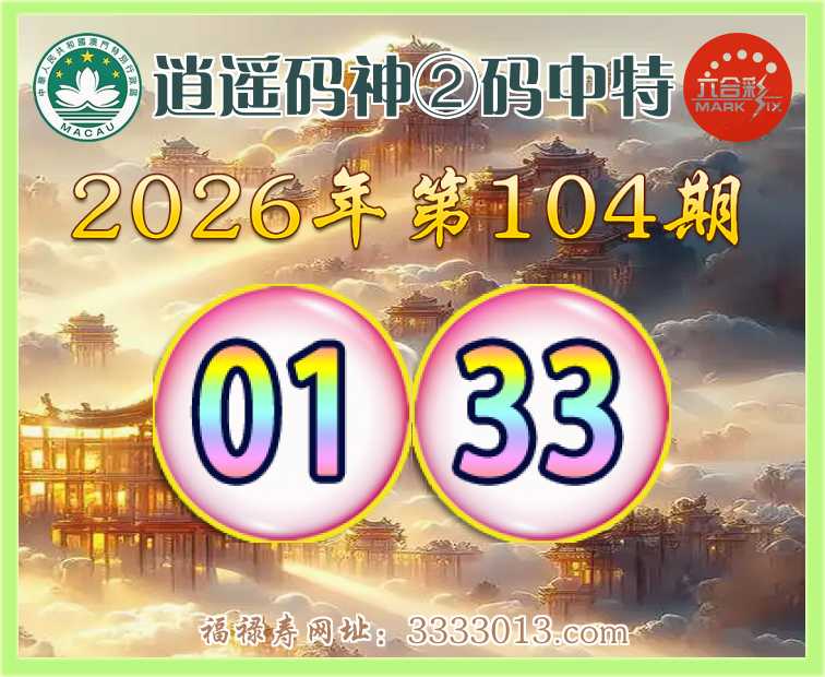 104期:〖逍遥码神〗 🤩②码中特🤩【01.33】开:01