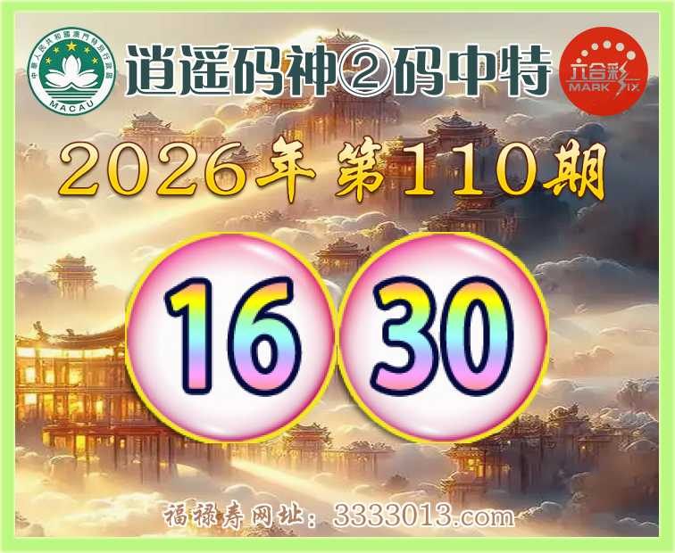 110期:〖逍遥码神〗 🤩②码中特🤩【16.30】开:30准实力上榜