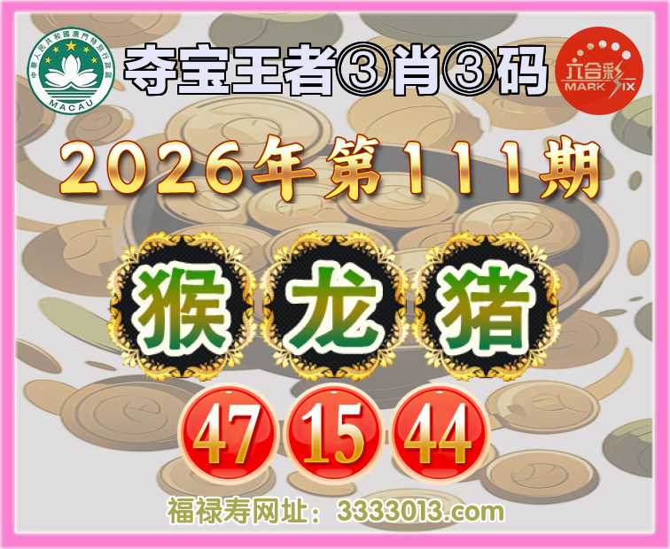 111期:【夺宝王者】 🍒③肖③码🍒【猴龙猪】【47.15.44】开:00准