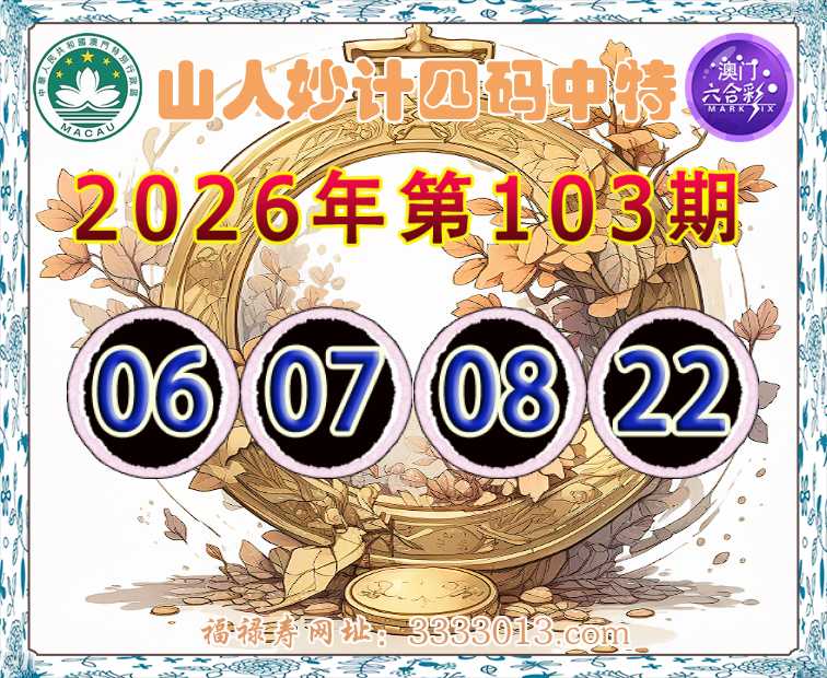 103期: ☺️《山人妙计》 ☺️四码中特☺️【06.07.08.22】开:06
