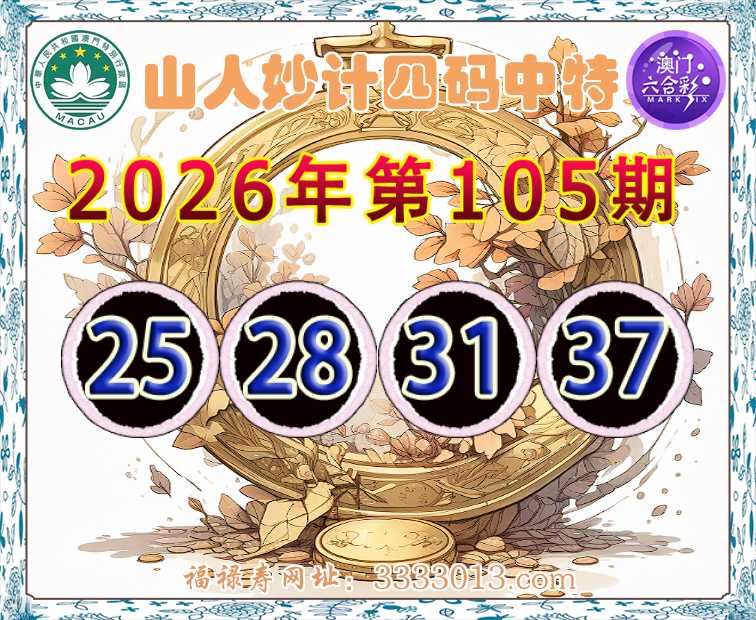 105期: ☺️《山人妙计》 ☺️四码中特☺️【25.28.31.37】开:28