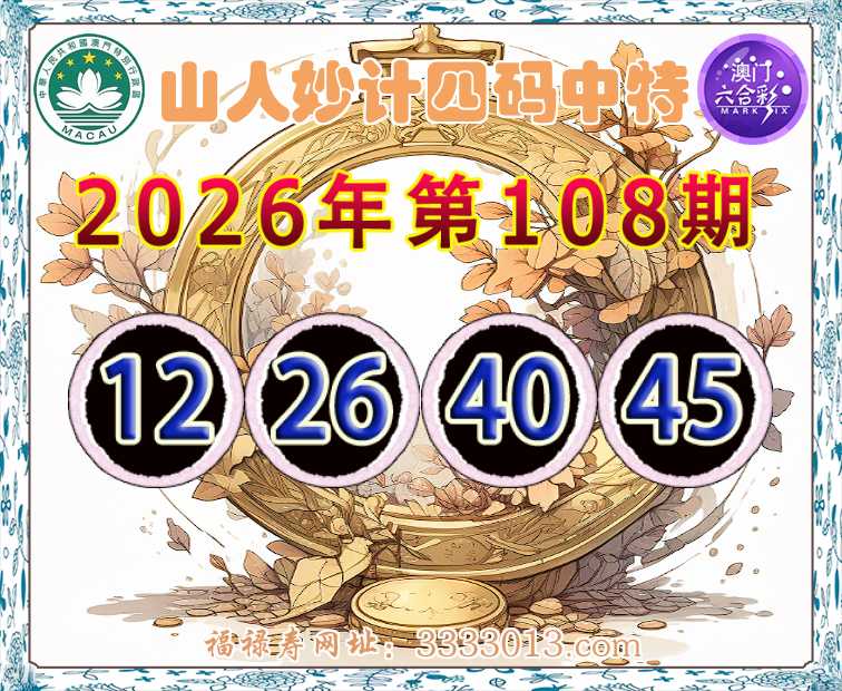 108期: ☺️《山人妙计》 ☺️四码中特☺️【12.26.40.45】开:45