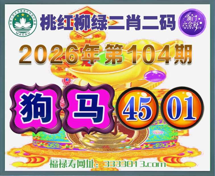 104期:《桃红柳绿》 ✌️二肖二码✌️【狗】【45.01】开:马01